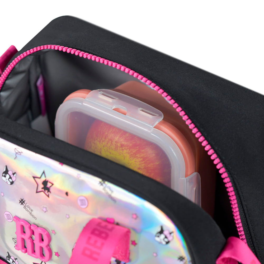 Kit Mochila Escolar + Lancheira Térmica + Estojo Box Feminino Rebecca BonBon Preto